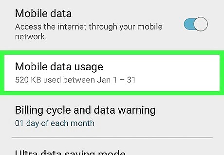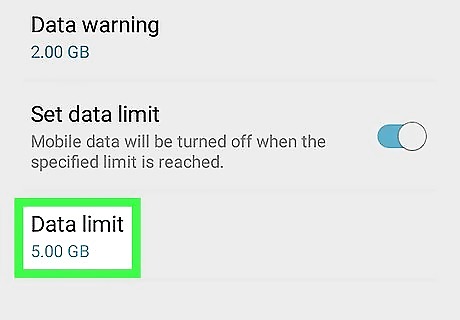 Tap Data limit to disable mobile data at a certain amount. It's at the bottom of the menu. Do this only if you want your Android to automatically disable mobile data once you reach a certain amount. Enter the maximum amount of data you want to use during the billing cycle before mobile data is deactivated.