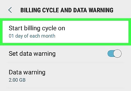 Make sure the listed dates reflect the correct billing cycle. If you don't see the correct dates, tap Start billing cycle on (Samsung) or App data usage cycle (other Androids) to specify a range now.