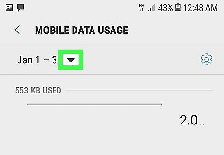Find the total mobile data usage near the top of the screen. This displays the total amount of data used for the dates listed. These dates are typically the 1st day of the month to the final day. If you purchased or leased your phone through your provider, the dates may reflect your actual billing cycle instead. To change the billing cycle dates on a Samsung, tap Billing cycle and data warning, then tap Start billing cycle on to make your date selections. To change the billing cycle dates on most other Androids, tap Mobile data usage, tap the gear, and then tap App data usage cycle to make your date selections.