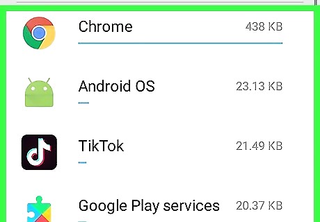 Scroll down to view data usage per app. Below the graph, you'll find a list of apps that have used mobile data during the selected time period. Each app displays how much mobile data it has used during the selected dates.