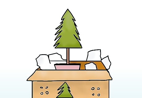 Put the plants into suitable containers the day before moving. Cardboard boxes are the best choice for most plants as they're sturdy and breathe. Use dampened newspaper or packing paper to hold the plants in place within the boxes. Protect the leaves using paper. Float a thin, damp layer of paper over the top of each plant to act as a protective layer.
