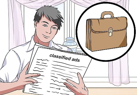 Find a job to apply for residency through work. You can apply for residency on the grounds that you have a paying job secured in Finland. Use online resources to try to find work from abroad, or temporarily visit Finland to look for work (you can visit for up to 3 months). The Finnish labor administration’s website and the European Job Mobility portal are good places to begin your search. If you’re currently in Finland, you can look for jobs in newspapers and visit local employment offices. Local employment offices will provide help in your job search even as a non-Finnish resident. Keep in mind the job will need to match income requirements set out by the Finnish government (at least 1,189 Euros per month for most sectors).
