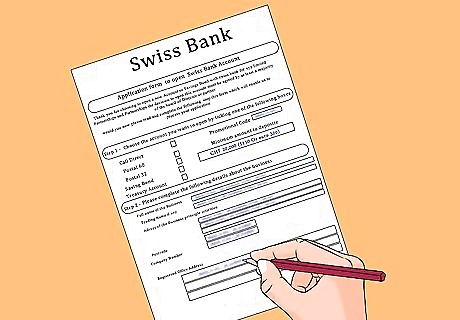 Fill out the necessary paperwork. As with any other bank account, there are forms and application materials that potential customers must fill out. Due to the security of Swiss banks and the international pressure to account for tax evasion efforts, however, the paperwork process can be quite lengthy. One Swiss bank expert reported that there can be upwards of 100 pages of paperwork required for a foreign investor to open a Swiss bank account.