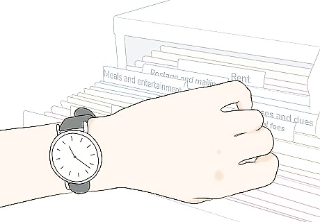 Schedule a specific time to file your receipts. Use the system that works best for you and that you can keep up with. Some small business owners prefer to file their receipts immediately, while others set aside a time once a week to go through them and file them. Whatever method you choose, you want to make sure you're going through your receipts and filing them while the particular transaction is still fresh in your mind so you know what that particular receipt is for. If you simply collect your receipts in a box and don't bother to categorize them, you'll have difficulty come tax time and you may end up losing deductions you could have taken if you were better organized.