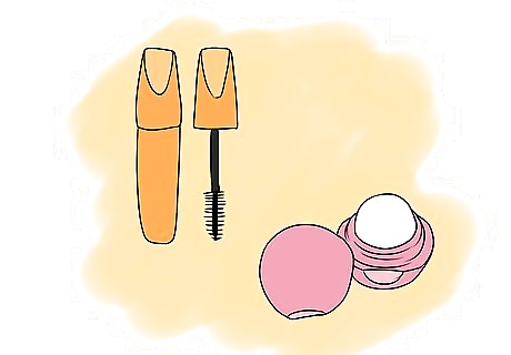 Gather your must-have makeup items. If you already have a makeup bag, sort out which are old and which are usable. The makeup bag necessities are lip gloss, lip balm, mascara, deodorant, and maybe perfume or period products if you use them. Always replace your mascara once every 2-3 months (or every 2 months if it's waterproof). Most people keep their mascara for too long, and this causes it to flake off and irritate the eyes. There's nothing like a fresh tube of mascara!