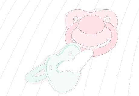 Consider pacifiers to help your baby’s ears adjust to pressure changes. Pacifiers will give your baby something to suck or chew on, and this can help with any ear pressure that may occur as the plane takes off and descends. Store your pacifiers in a clean, resealable bag so they stay clean. If you don't use pacifiers, you can also nurse or provide a bottle during take-off and landing.