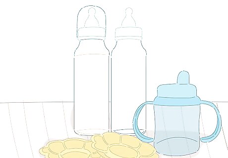 Pack bottles and sippy cups, as well as plates/utensils, if needed. Since you probably won't be able to clean your bottles thoroughly during travel, you probably want to bring enough so that you can use each one just once. You can probably get by with fewer plates/utensils, if any.