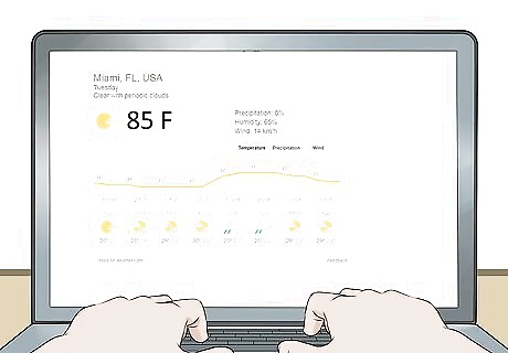 Check the weather. Even though it’s the “Sunshine State,” the weather in Florida fluctuates a bit with the seasons. Your packing needs will vary greatly from month to month. As a general guide: The average high in Florida in February is in the high 60s, and the average low is in the low 40s. The average high in Florida in July is in the low 90s, and the average low is in the low 70s. Don’t forget to make note of the precipitation forecast as well.