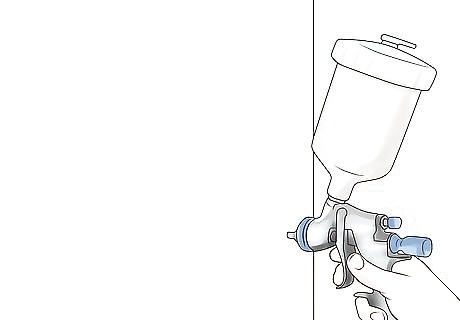 Decide which paint application method to use. Whether you use a brush, roller or paint sprayer to paint your house is ultimately a matter of personal preference. Each method has its benefits - using a brush gives you greater control over the painting, using a roller makes the job more efficient, and using a paint sprayer provide heavier coverage. Using a brush: Many people who are painting their homes for the first time prefer to use a brush, as it forces you to be very thorough and gives you control over every square inch of the house. To use: dip your brush into the paint until the bristles are halfway covered. Touch the brush against the wall at several points across a horizontal line. Go back and paint back and forth to fill in the empty spots and provide even coverage. Using a Roller: To use a roller, roll it in the paint until all sides are evenly covered, then apply the paint to the wall using criss-cross strokes. Then, go back and paint over the same section using up and down strokes to fill in the gaps. Using a paint sprayer: To use a paint sprayer, load your chosen paint into the sprayer. Hold the sprayer upright, about 1 foot (0.3 m) away from the wall. Move the sprayer smoothly back and forth, beginning the motion prior to pulling the trigger to avoid areas of heavy deposits of paint. Make sure each new stroke overlaps the previous one by about 8 inches (20.3 cm). Using the spray and back-roll technique: The spray and back-rolling technique is a particular method recommended for both its speed and evenness of coverage, but it requires two people. It involves one person using a sprayer to quickly coat the wall in paint, and the other person following behind with a roller to spread and even it.