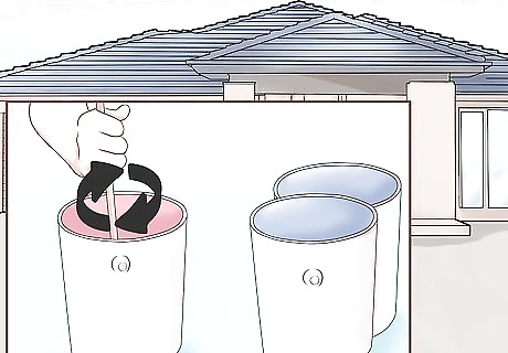 Mix your paint. If you bought several cans of paint, you will need to mix all of the paint from individual cans together in one large container. This is due to the fact that the color of different batches of paint can vary slightly, even if it's meant to be the same. Mixing them together ensures an even color. Hold on to the original paint cans though. That way, if you have any paint left over you can pour it back into the original cans and reseal it. At this point you should also cover the area around your home with drop cloths, to prevent any paint from getting on sidewalks or landscaping.
