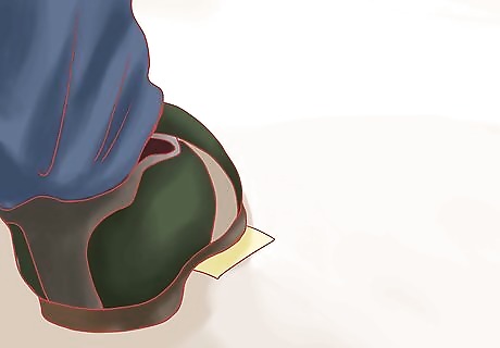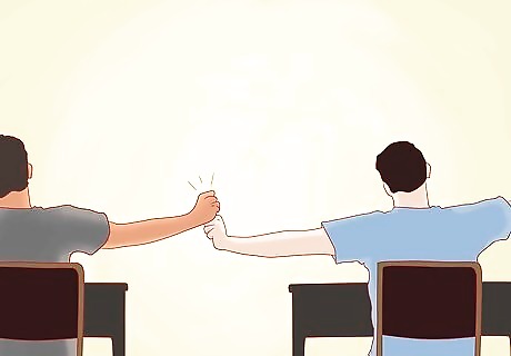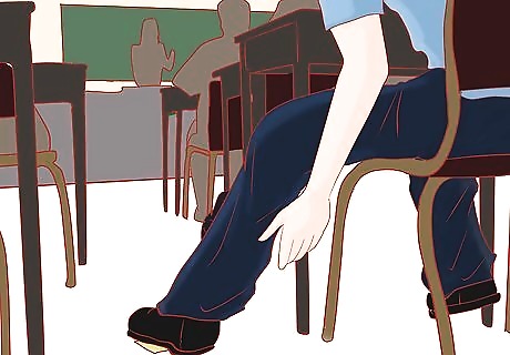 Slide the note over to your friend. If your friend is on the right, drop and pick something up from the left. While you bend down to get it, flick your foot and raise your leg slightly. This should also be used on the right side.