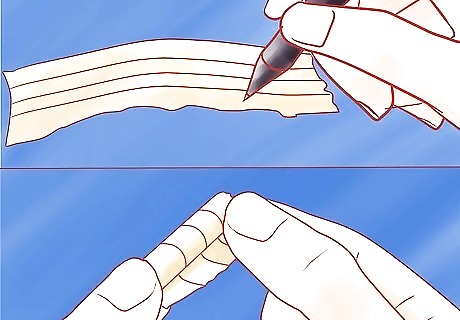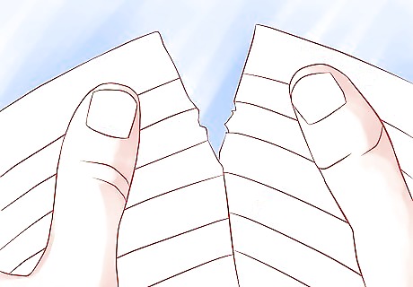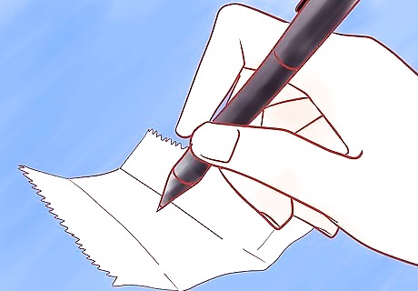 Write your note naturally. Then, fold your index card with the torn parts so it's about a 1x1 inch square with folds on the edge. It should look like a bit of ripped paper going to the trash.