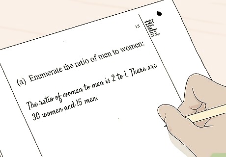 Focus on providing numbers and facts if asked to “enumerate.” If the action verb for a question asks you to “enumerate,” this means that your answer should include numbers. Don’t analyze or interpret the numbers. Just provide them in a straightforward fashion. For example, if the question asks you to enumerate the ratio of men to women, then you might write something like, “The ratio of women to men is 2 to 1. There are 30 women and 15 men.”
