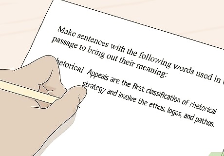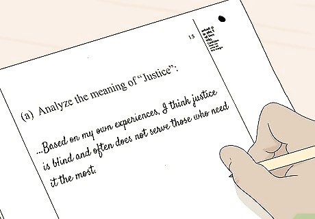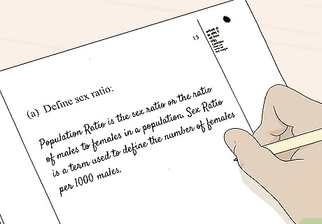 Provide a definition from memory when asked to “define.” Try to explain the term using words and phrases from the actual definition. This will require you to memorize key terms and their definitions according to your study guide for the exam. When the test asks you to define a term, write the definition from memory and don’t include any extraneous information. For example, if you are asked to define the term, “water stress,” then you might define the term as "an inability to meet the human need for water in a region or community." Sometimes a request to define a term will be followed up with a question. Read the instructions carefully to ensure you don’t miss anything.