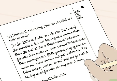 Write legibly in English or Hindi, but not both. Mixed language answers are not acceptable on the exam. Choose either Hindi or English to record your responses and write legibly in your chosen language. Use a pen, not a pencil, to write your answers. If your handwriting tends to get sloppy when you write quickly, practicing writing at a slower pace.Tip: If you don’t write by hand very much, practice your handwriting before the exam by writing in a journal for 15 minutes per day. Write about your day, record your daily food intake, or write poetry to get more practice.