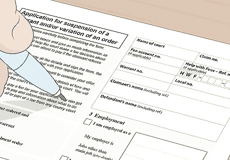 Find out if the creditor is using bailiffs to collect the money. If you received a CCJ and ignored it or didn't make any payments, the creditor may have applied to the court for a warrant. The warrant gives a bailiff the right to come to your home or property and demand payment. You have 7 days from the date the warrant is issued to take care of the situation before the bailiff comes to visit you. Applying to change the payment terms can stop the bailiff.Tip: Contact the creditor and let them know that you're applying to change the payment terms. They may withdraw the warrant on their own.