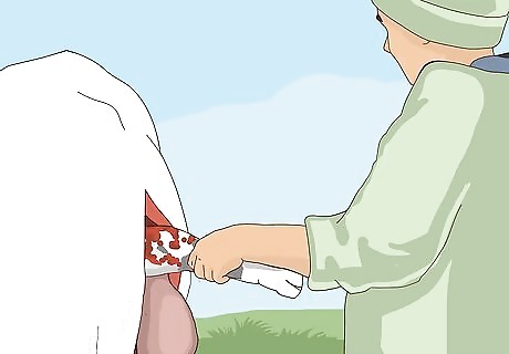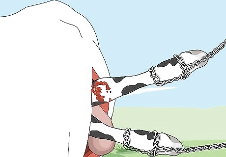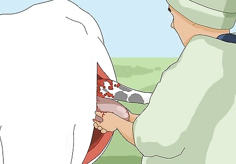 Remove the placenta. Reach in the uterine cavity again and begin to remove the placenta from the uterine wall. This step is optional, since some vets like to remove the placenta while the uterine wall is still open. Other vets prefer to leave the placenta in the cow and let her expel it herself.