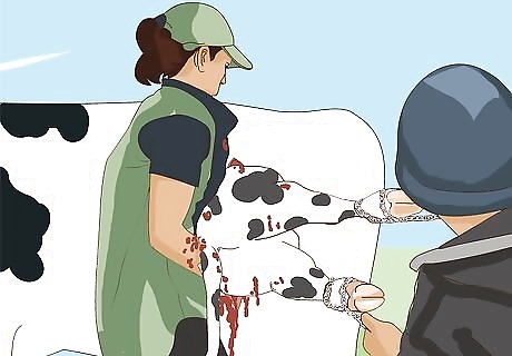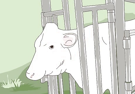Secure the head. The cow or heifer must have her head secured in a head-gate to prevent her from escaping before or during the surgery. You may confine the cow to a head gate of a handling facility you already have, or a calving or maternity pen specifically suited for this very practice.