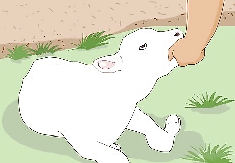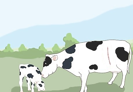 Get the calf breathing. Get the person helping you (and other folks watching you do the surgery) to get the calf breathing, as described in How to Help a Cow give Birth. You may want to get them to give the calf a bottle of colostrum right away as well.