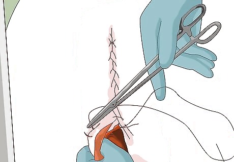 Make the incision. Make an incision through the skin and into the abdominal cavity. The incision itself is usually no longer than 12 to 16 inches (30.5 to 40.6 cm) in length.