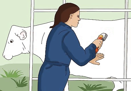Shave down the area where the incision will be. Most C-sections are performed on the left side of the cow, or according to whichever side the cow is laying on if she's a downer cow and cannot get up without risk of collapsing again. In this case with a standing cow, the left flank--located just behind the last rib and before the hook of the pelvis--is shaved. A quarter inch of hair--or less--should remain afterwards.