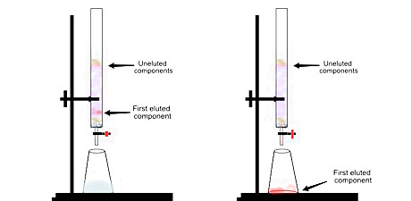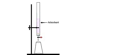 Read and understand the lab procedure. The goal of column chromatography is to separate and collect the desired chemical components from a mixture. Separation will occur within a column containing a stationary adsorbent and a mobile eluant (solvent). An impure sample is introduced to the column and eluted (or separated) by running eluant through the column. Separation will occur because your impure mixture is made up of different chemical components that will be unevenly adsorbed (attached) to the surface of the adsorbent. The adsorbent is a porous material, commonly alumina or silica gel, and is the medium through which your mixture will separate. Ideally, as the eluent runs through your column it should interact with a single component, thus extracting one component from the mixture while the other(s) remain adsorbed at the top of the column. Several eluents may be used to separate multiple components of your mixture.