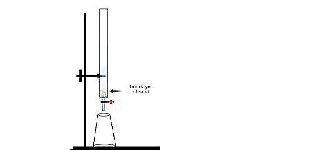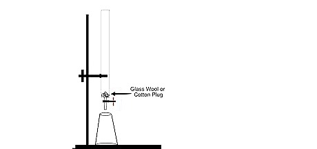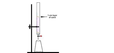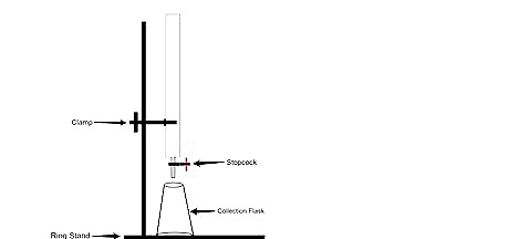 Assemble the column apparatus. Using a ring stand and an appropriate clamp, position the column so that the tip of the column is several inches above the base of the stand. The space between the base of the stand and tip of the column should be large enough that the collection flask can be easily positioned to collect the column’s output, but small enough so that the liquid output does not splash when it lands in the flask.