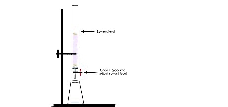 Adjust the solvent level so that it is several millimeters above the top layer of sand. Position a collection flask beneath your column, open the stopcock, and allow the solvent level to recede until it is several millimeters above the top layer of sand. Your column is now ready to use.