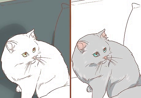 Choose your background. Consider what kind of background to use when taking a photo. If you choose a background that's bright, detailed, or distracting, your cat will be competing for the focus of the shot. If you use this kind of a background, photograph only a bit of your cat (like her tail as she runs from the frame). For a professional-style portrait, consider using a simple white backdrop or neutral sofa. This will make your cat the focus of the image. You can keep the background natural by just photographing outside in the yard. When choosing a professional-looking background, simplicity is key! White, gray, or black backgrounds are an appropriate choice for professional-looking photographs. Natural backgrounds, though, like trees or grass, can also be appropriate. Ultimately, you want a background that highlights, rather than detracts from, your subject.