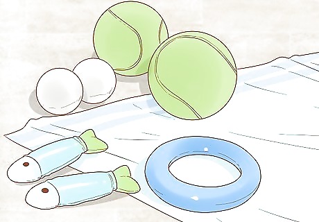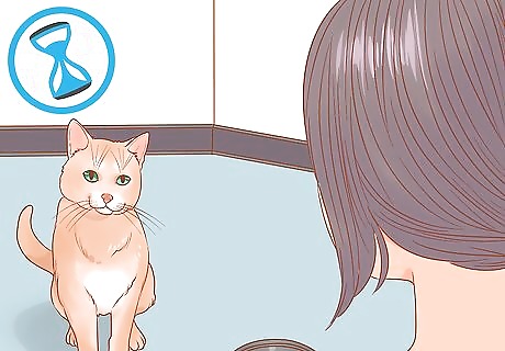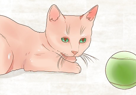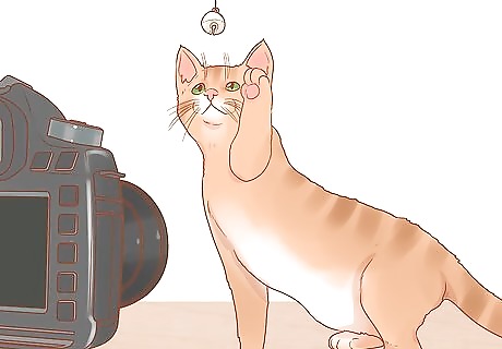 Give your cat something to do or look at. Your cat probably won't simply sit still while you take her portrait. Instead, give her things to play with. Consider offering her new toys to play with. If you'd like to keep her in one spot, try setting up a new stationary toy like a cat tower or post. Try giving your cat a view of something interesting. For example, offer your cat a view out of a window and scatter bird seed outside. This way, she'll be entertained by birds eating.