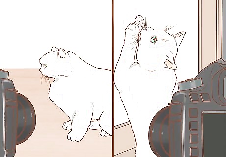 Get action shots. Taking posed cat portraits can be difficult, so start by letting your cat run around and play. Take candid action shots while she does this. It's a great way to let your cat's personality really shine. Make sure your shutter is set to a high speed so the image doesn't come out blurry.