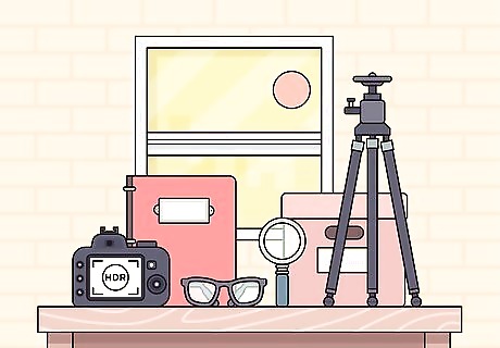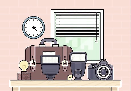 Set up a tripod when preparing for a shoot. Allow even amounts of light into all of your pictures by investing in a tripod stand. While you can get still get great photos by holding the camera yourself, a tripod gives you more freedom to play around with exposure settings. Additionally, it’s easier to keep your camera steady when you use a tripod. The lower your tripod is, the less likely it will vibrate and potentially affect your photo quality. If you don’t have a tripod on hand, then it might take a longer time to set up the proper angle and lighting with your camera.