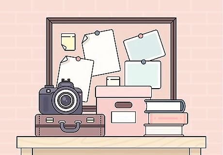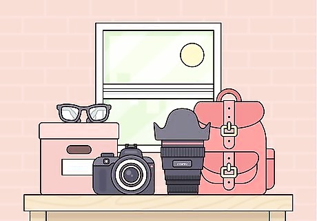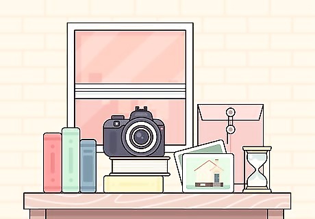 Remove any clutter or personal items from the space. While you want your home to look lived in, you don’t want to include any obvious clutter in your photos, either. Put away, recycle, or throw out anything that doesn’t serve a decorative purpose to the room.Tip: Aim for a minimalistic set-up. While a few light fixtures and vases can add a tasteful sense of coziness to a home, too many decorations can make a room look tacky.