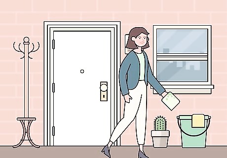 Wipe down any smudges or dust from the windows. Take some window cleaner and spritz down all windows that will be visible in your photo shoot. Additionally, wipe down and polish any clear doors. Ideally, aim to get rid of any fingerprint smudges or other obvious markings on the windows. If you don’t want to use harsh chemicals, consider using a cleaning product with more natural ingredients.