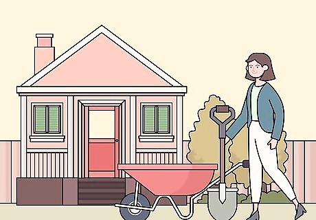 Mow your lawn and trim any visible shrubbery. Make your yard look as appealing as possible when you’re taking a variety of outdoor shots. Re-mulch any areas where you have flowerbeds or bushes growing, and trim away any withering branches from the larger shrubs and plants in your yard. Try to keep flower pots symmetrical when placing them on your front lawn. A little bit of yard work can go a long way! If potential buyers see lots of weeds and overgrown grass in a yard, they’re probably not going to be as interested in the property.