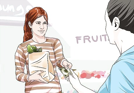 Organize your shopping list. If you can plan a week's worth of menus ahead of time, you will be able to list everything that you need from the store. Match your grocery list to your menus, adding in extra items such as fruit and nuts. If you have a list ready, you'll be able to easily let your friends and family help you out by doing the shopping for you. Try planning only two options for breakfasts, two for lunch, and two for dinner. This will get you through the week, but cut down on the amount of ingredients you need to buy. A full fridge will help ease your stress, so buy more than you think you might need at first. You'll find that with a new baby, it's much harder to pop out to the store if you need something.