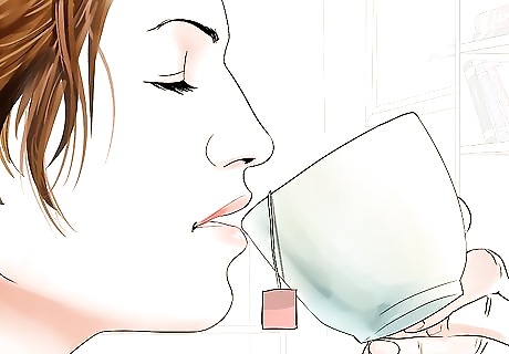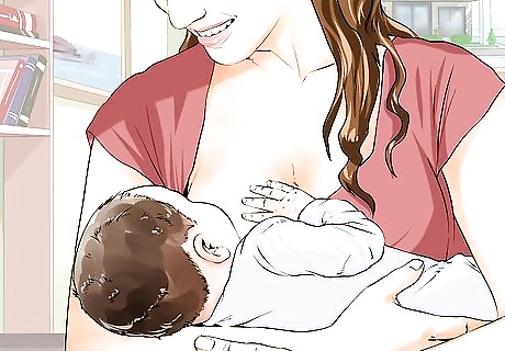 Stay hydrated. It's important to drink plenty of fluids while you are breastfeeding. Make it a habit to drink whenever you are thirsty. Water is the best choice, but you can supplement that with low-sugar juices and soups. Make sure to limit your caffeine intake while breastfeeding. Opt for caffeine free green tea instead. Low fat milk is also a great choice to help you stay hydrated.