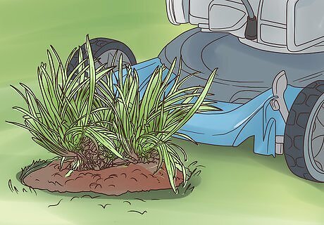 Purchase or gather the mondo grass. You can purchase mondo grass at a local gardening or home improvement store. Alternatively, you can use tufts from other mondo grass areas in your yard. Mondo grass is typically transplanted, rather than grown from a seed, so don't waste time looking for a small packet of seeds. You'll be purchasing a plant that is already grown. If you're transplanting grass from one area of your yard to another, be careful to keep the roots of the plant in tact when you remove it from the ground. Use a tool to scoop the tufts out rather than trying to rip them from the ground.