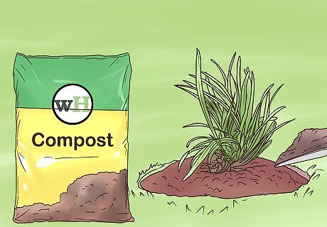 Use compost to top-dress annually. Once your grass is planted, you'll want to make sure it retains nutrients. Apply about a ⁄2 inch (1.3 cm) of compost to the soil every spring, especially in the first few years of growth. You can use compost to maintain the color and health of your mondo grass throughout the spring and summer. Be careful to not add too much compost. Add no more than 1 inch (2.5 cm) per spring/summer after the first year, especially if you're using manure-based compost. It is higher in phosphorus than plant-based compost, and can be harmful to your plant in excess.