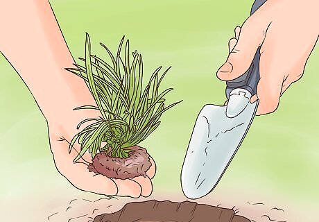Separate the grass into handful-sized tufts with lots of roots. You'll want to make sure the tufts of grass have plenty of roots, as a well-established root system will be essential for your plant to thrive long-term. Remember that tufts should be no larger than 3 inches (7.6 cm) wide, or they won't fit properly in the planting holes.