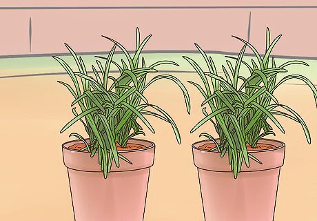 Plant the grass in a shaded or partly sunny area. Mondo grass works great under trees and you can use it to fill in those bare, difficult-to-mow areas of your lawn or garden. In the early stages of planting, avoid areas that are completely sunny, as this will likely dry out the plant. If you're looking to show off the flowers in this plant, consider replanting every year, keeping the spikes short, and keeping it in a container or raised bed rather than planting it in those hard-to-reach areas. Do companion planting with mondo grass. Liriope is a similar looking plant and compliments planting with mondo grass.