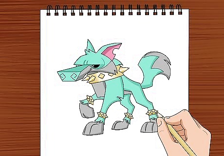 Draw your animal or creature. You don't need to stay true to the actual game's art style, but if you want to, you can. You can add any color you would like to add onto your animal using coloring pencils, paint, or crayons, and have any pattern that you are willing to put onto your animal! Just make sure that your colors aren't the same as your friend's, or else they may get mixed up! Cut out your animal or creature if you want/need to using scissors. In order to move your animal around, they have to be separate from the paper. If you are young, make sure you get help from a parent or guardian so you don't get injured.