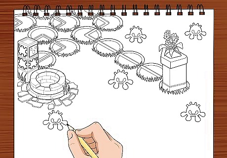 Add the ground if you want/need to. The ground can be just about anything, including grass, stone, snow, and candy. Use an entire sheet (or several) of paper to draw the ground on, and add or subtract anything that you want to be in the ground.