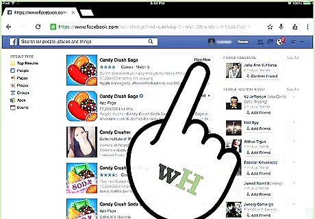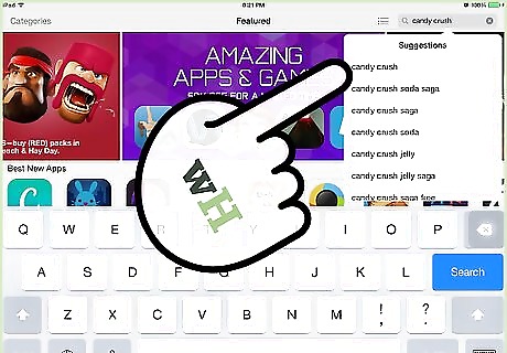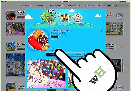 Look for the iPad version of the game. Enter the name of the Facebook game you’re playing on the search field at the top of the App Store screen, and press the Enter button on your keypad. The iPad version of the game should immediately appear at the top of the result list. Examples of Facebook games available in the App Store are those developed by King, like Candy Crush Saga. Keep in mind, though, that compatibility of the iPad version of the Facebook game varies from one app to another. If an iPad version doesn’t appear on your search result, the app is not compatible with your device or the developers might not have a version for your device. If this is the case, you may now skip this entire method and proceed to the next one below.