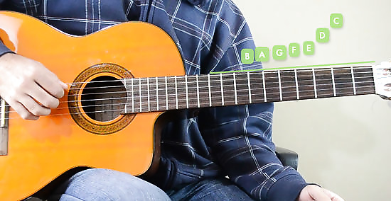 Sound out a melody with the notes. Once you've learned the notes to the C Major scale, play around with the notes. You'll discover simple melodies that can be played simply with the notes from the C Major scale. For example, you can play the song "Twinkle, Twinkle Little Star" using only the notes from the C Major scale. In fact, this song can be played entirely on one string on your guitar. Practicing simple songs like this is a good way to become familiar with the scale itself and the relations between the notes.