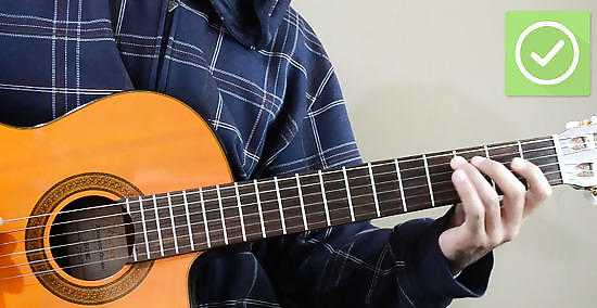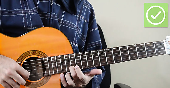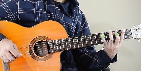 Use the corresponding finger on the corresponding fret. When you learn to play guitar, your fingers are numbered in a universal way. The frets on your guitar also are numbered. In first position, the finger number and the fret number are the same, so that your first finger is on the first fret. In case you aren't familiar, your first finger is your index finger, your second finger is your middle finger, your third finger is your ring finger, and your fourth finger is your pinky. After first position, the relations between finger numbers and fret numbers change. For example, if your first finger is on the second fret, your hand is in second position. The second finger has access to the third fret, your third finger to the fourth fret, and so on. Remember to use just the tip of your finger to fret the strings, and keep your other fingers curled over the fret board when you're not using them to fret a string.