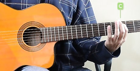 Find the root note. The root note of any scale is the note that names the scale. So for the C Major scale, the root note is C. In first position, you'll find this note on the third fret of the fifth string.