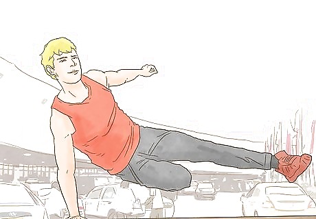 Practice quadrupedal movement. Learn to crawl quickly on your hands and feet. When doing parkour, you will use quadrupedal movement to crawl under objects and fit into tight spaces with swiftness and ease. Practicing quadrupedal movement is also an excellent workout in and of itself, as it exercises all four of your limbs along with your core.