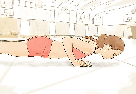 Build functional strength. When you parkour, you will need the strength to do things like jump, climb, and vault your way past obstacles. As such, you will need to develop muscles in your legs, arms, and core. Squats, push-ups, pull-ups, and lunges are excellent exercises for this type of strength training that don't require specialized equipment to do. Remember that the amount of force you'll need to generate is proportional to the weight of your body and that muscle is fairly heavy. Because of this, traceurs tend to be lean rather than bulky.
