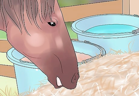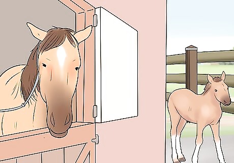 Provide the mare with food and fresh, clean water. The mare may want to eat right away, and she’ll probably be thirsty after or her ordeal. Make sure she has plenty of fresh food, and use the same blend you gave her during her pregnancy. Also, provide plenty of fresh water but make sure the trough or bucket is high enough off the ground that the foal can’t fall into it.